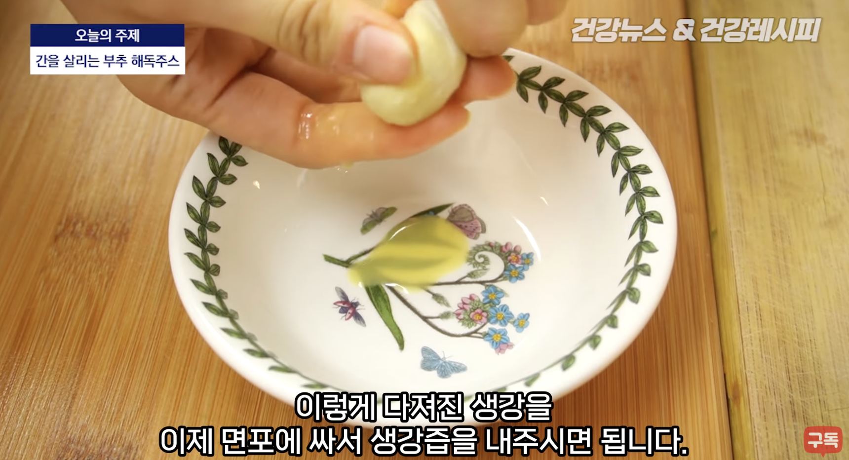 3. 다진 생각을 면포에 넣어서 생강즙을 내주셔야 합니다.